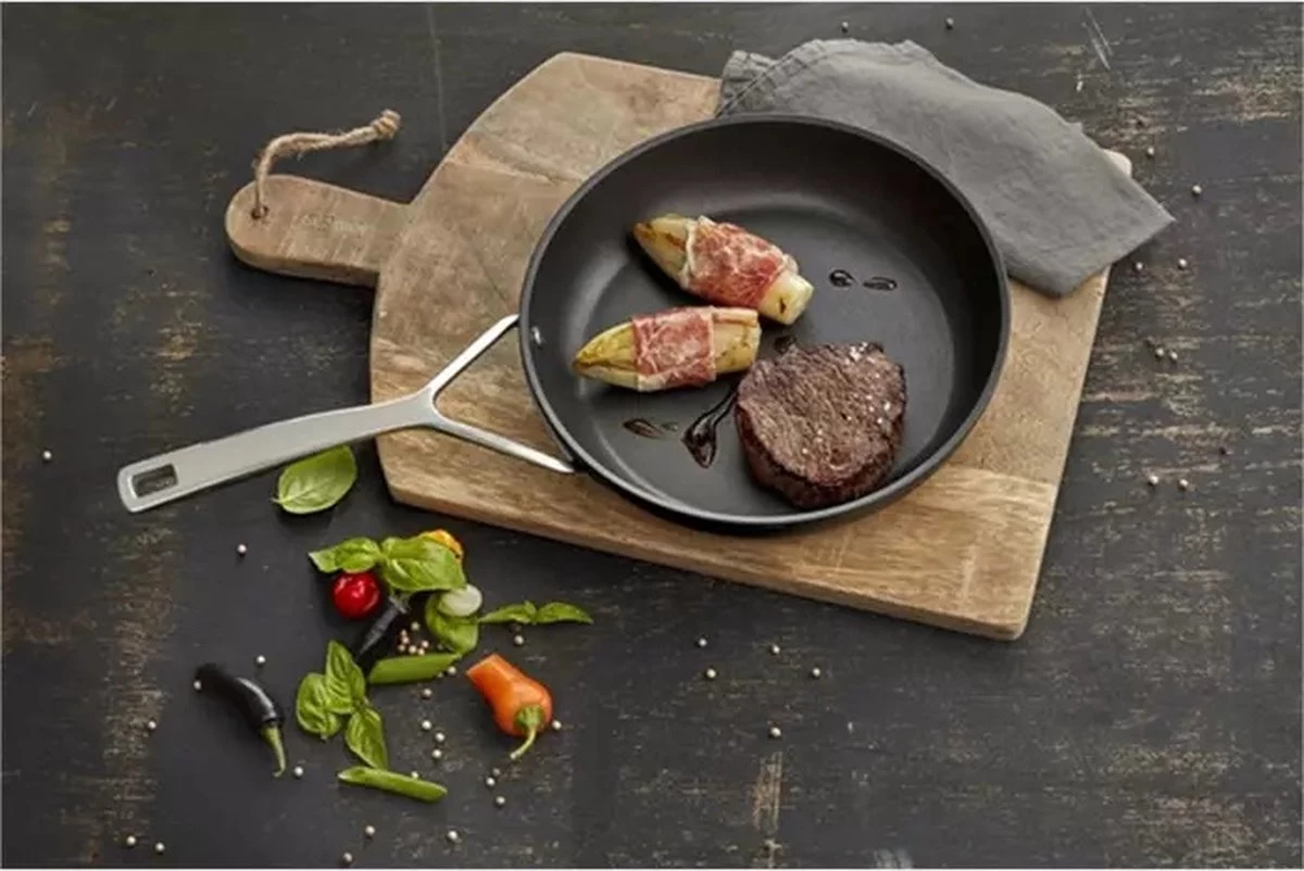 De Alu Pro koekenpan ligt goed in de hand. Het is een lichtgewicht welke toch erg sterk is en de 5mm dikke aluminiumbodem zorgt ervoor dat de pan uitstekend warmtegeleidend is. De innovatieve Radiant® bodem is gecombineerd met TriplInduc® technologie waardoor je een groter contactoppervlak met je fornuis hebt, verhoogde stabiliteit en een maximaal rendement op inductiekookplaten. De pan is voorzien van een 5-laags titanium plasma antikleeflaag waarbij de titaniumdeeltjes zorgen voor een verlengde levensduur. Deze laag maakt het bereiden van delicatere en eiwitrijke producten zoals vis, gepaneerde producten en eiergerechten gemakkelijk.
