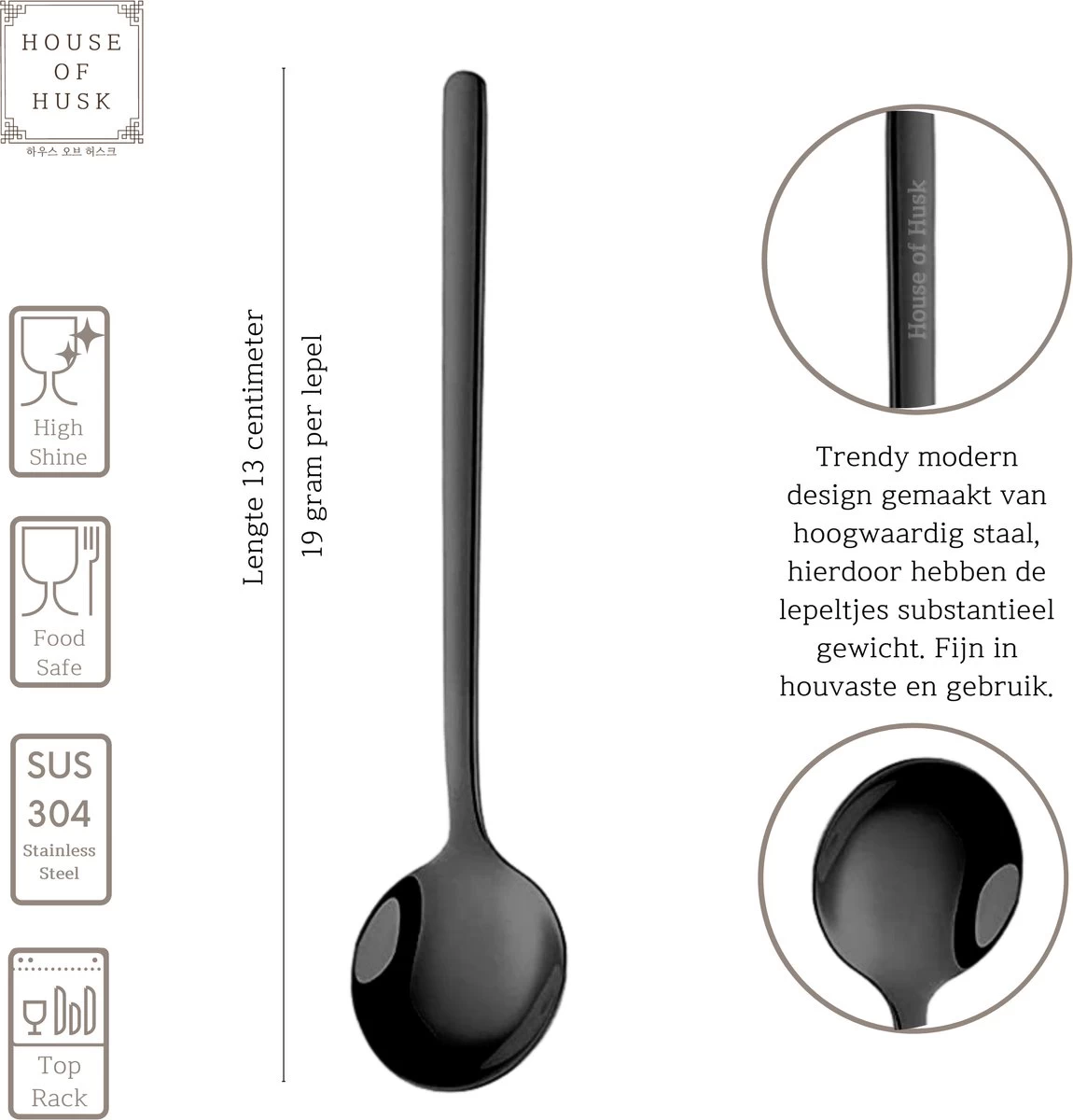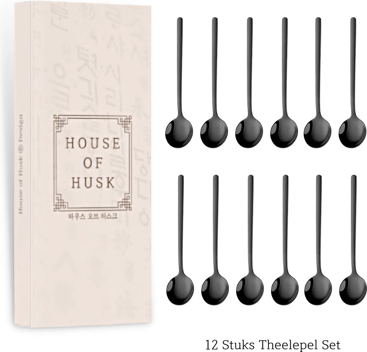 House Of Husk® Theelepels Set – Theelepeltjes – Koffielepels – Koffielepeltjes – RVS – 13cm – 12 Stuks – Zwart