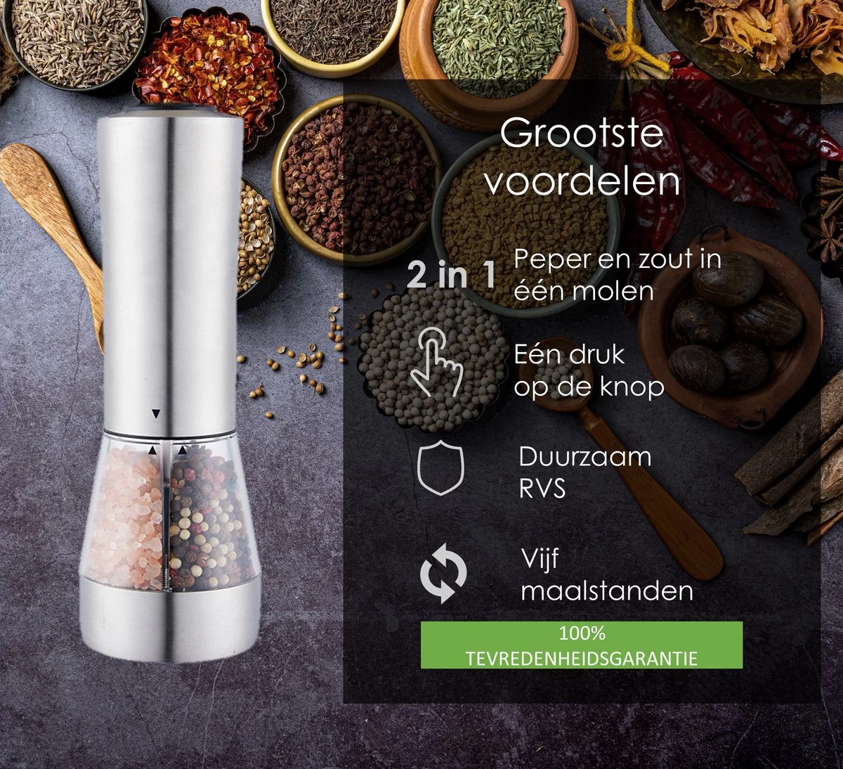 - Inhoud verpakking: één peper- en zoutmolen (2 in 1)