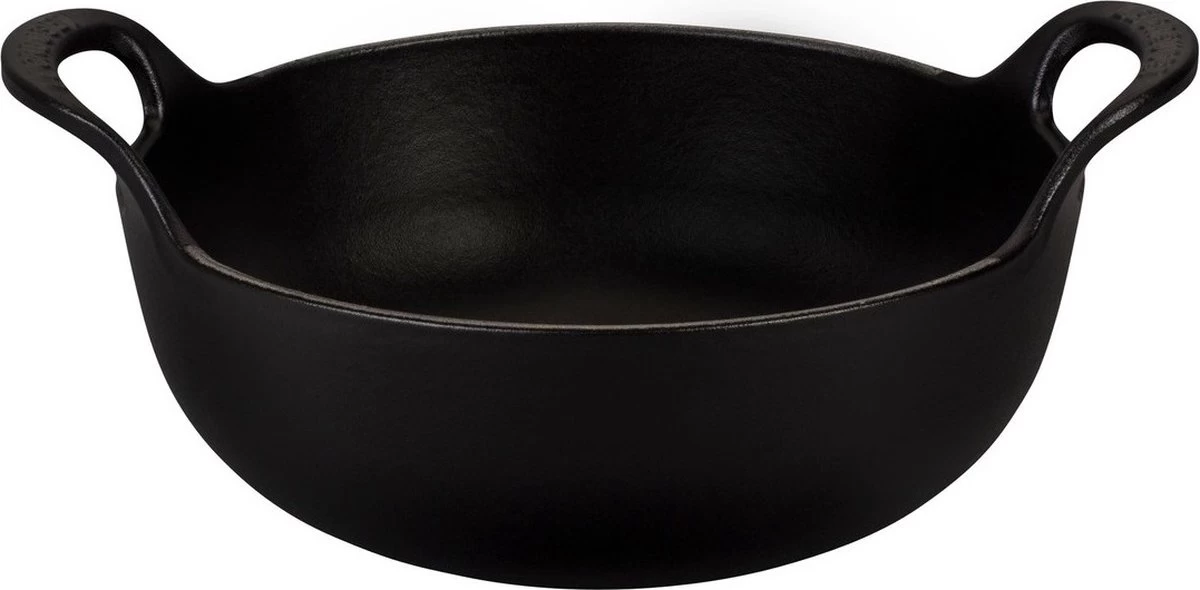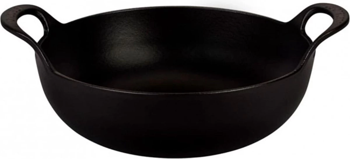 Le Creuset Wokpan Balti Dish Mat ZwartDeze Le Creuset Wokpan Balti Dish in het mat zwart is afkomstig uit Baltistan in Noord-Pakistan. Deze wok heeft een diameter van 24 centimeter en is vervaardigd uit geëmailleerd gietijzer. Dit materiaal houdt de warmte vast, zodat het eten gelijkmatig kan bakken en bruinen. Met deze wokpan maak je diverse Balti-gerechten, zoals gemarineerd vlees, groenten en specerijen. Ook kan deze pan onder de grill of in de oven gebruikt worden.