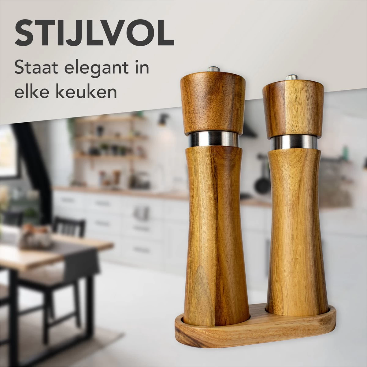 Nimma® Peper En Zoutmolen Set – Incl Navul Lepel – Verstelbare Maalgraad – Acacia Hout
