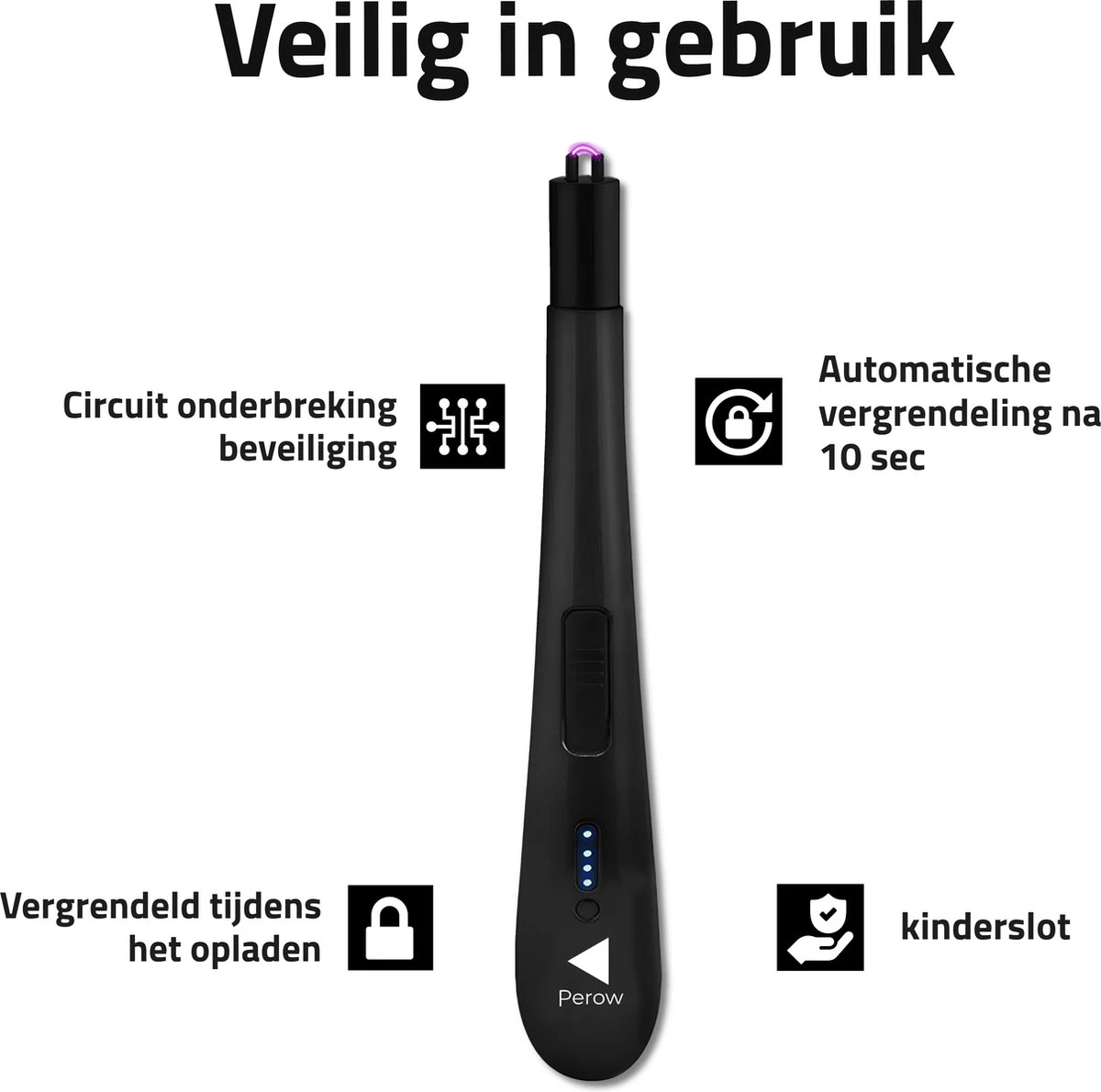 Oplaadbare Lange Elektrische Aansteker – Zwart – Duurzame Plasma Aansteker – Inclusief Cadeauverpakking – BBQ – Kaarsen
