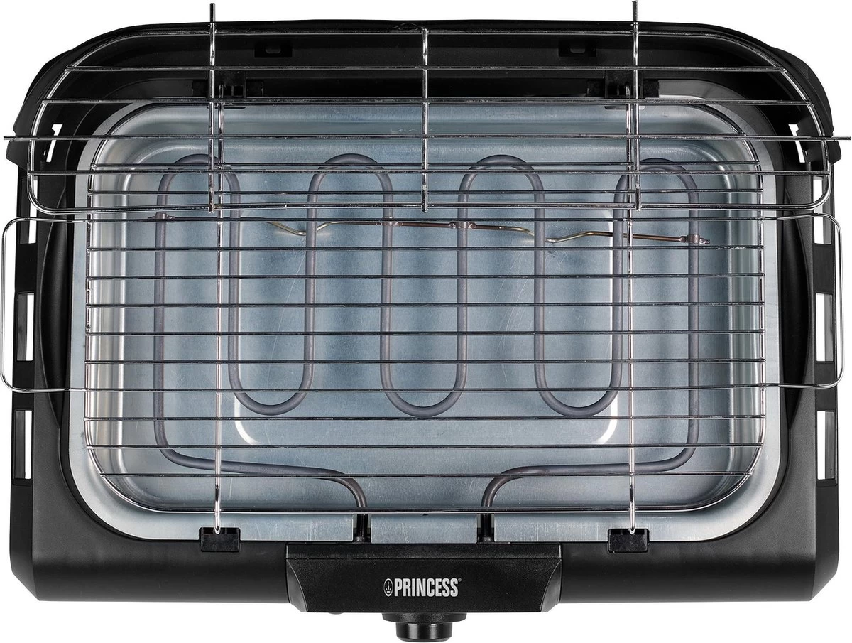 Dankzij de meegeleverde standaard gebruik je de Princess elektrische barbecue zowel als tafelmodel als losse barbecue. De stevige standaard heeft een extra opbergblad waar je al je grillgerei, bestek en marinades in kwijt kunt. De barbecue heeft twee grillroosters op verschillende hoogtes waardoor je niet alleen vlees grilt, maar ook vis en groenten. Gebruik het bovenste grillrooster om een ​​groter stuk vlees te laten rusten, zodat het warm en sappig blijft, terwijl u de groenten snel grilt op het onderste rek, zodat u het allemaal tegelijkertijd kunt serveren.